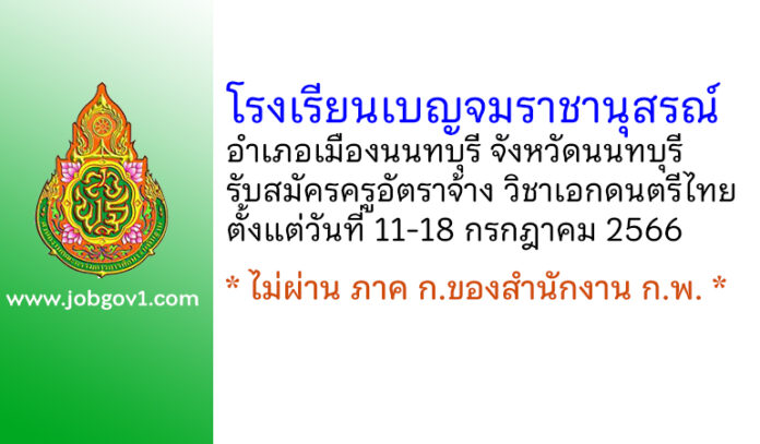 โรงเรียนเบญจมราชานุสรณ์ รับสมัครครูอัตราจ้าง วิชาเอกดนตรีไทย ตั้งแต่วันที่ 11-18 กรกฎาคม 2566