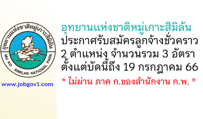อุทยานแห่งชาติหมู่เกาะสิมิลัน รับสมัครลูกจ้างชั่วคราว 3 อัตรา ตั้งแต่บัดนี้ถึง 19 กรกฎาคม 2566