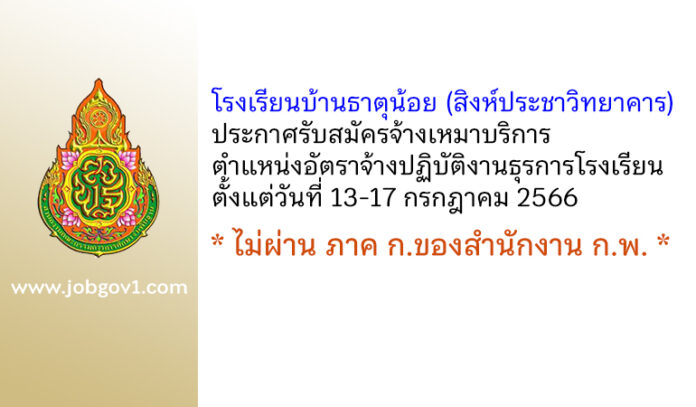 โรงเรียนบ้านธาตุน้อย (สิงห์ประชาวิทยาคาร) รับสมัครจ้างเหมาบริการ ตำแหน่งอัตราจ้างปฏิบัติงานธุรการโรงเรียน ตั้งแต่วันที่ 13-17 กรกฎาคม 2566