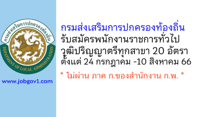 กรมส่งเสริมการปกครองท้องถิ่น รับสมัครบุคคลเพื่อเลือกสรรเป็นพนักงานราชการทั่วไป 20 อัตรา ตั้งแต่ 24 กรกฎาคม -10 สิงหาคม 2566