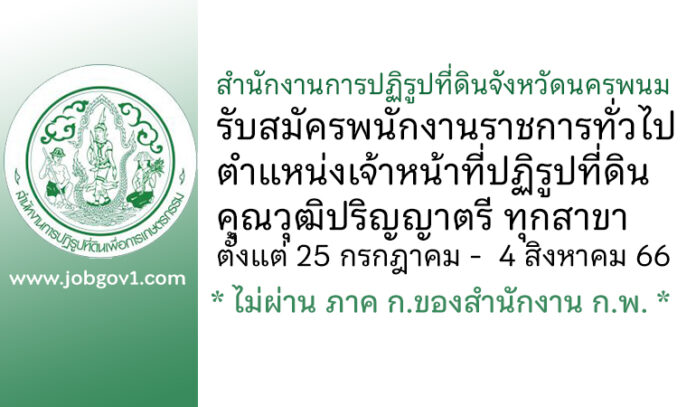 สำนักงานการปฏิรูปที่ดินจังหวัดนครพนม รับสมัครพนักงานราชการทั่วไป ตำแหน่งเจ้าหน้าที่ปฏิรูปที่ดิน ตั้งแต่ 25 กรกฎาคม – 4 สิงหาคม 2566