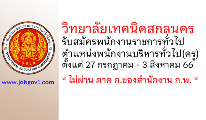 วิทยาลัยเทคนิคสกลนคร รับสมัครพนักงานราชการทั่วไป ตำแหน่งพนักงานบริหารทั่วไป(ครู) ตั้งแต่ 27 กรกฎาคม – 3 สิงหาคม 2566
