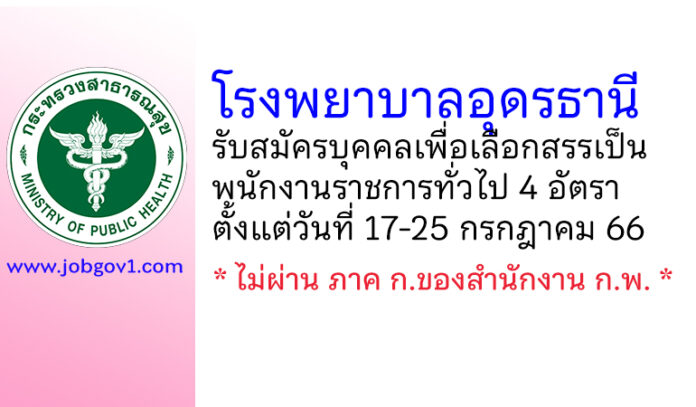 โรงพยาบาลอุดรธานี รับสมัครบุคคลเพื่อเลือกสรรเป็นพนักงานราชการทั่วไป 4 อัตรา ตั้งแต่วันที่ 17-25 กรกฎาคม 2566