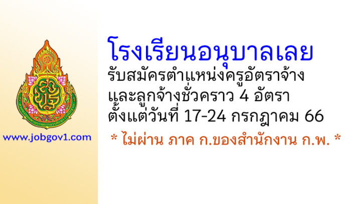 โรงเรียนอนุบาลเลย รับสมัครครูอัตราจ้าง และลูกจ้างชั่วคราว 4 อัตรา ตั้งแต่วันที่ 17-24 กรกฎาคม 2566