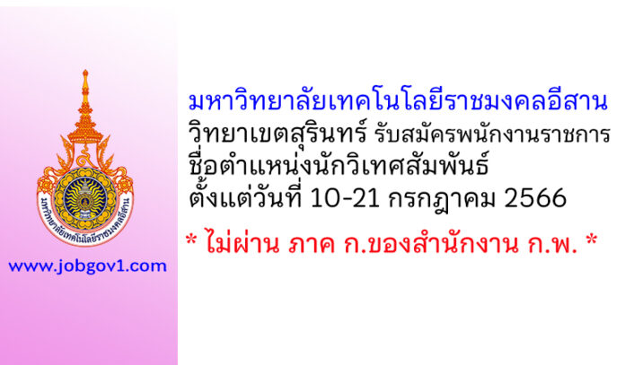 มหาวิทยาลัยเทคโนโลยีราชมงคลอีสาน วิทยาเขตสุรินทร์ รับสมัครพนักงานราชการทั่วไป ตำแหน่งนักวิเทศสัมพันธ์ ตั้งแต่วันที่ 10-21 กรกฎาคม 2566