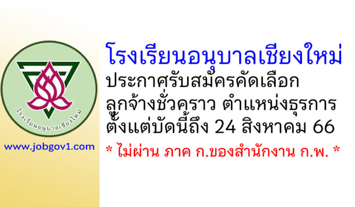 โรงเรียนอนุบาลเชียงใหม่ รับสมัครคัดเลือกลูกจ้างชั่วคราว ตำแหน่งธุรการ ตั้งแต่บัดนี้ถึง 24 สิงหาคม 2566