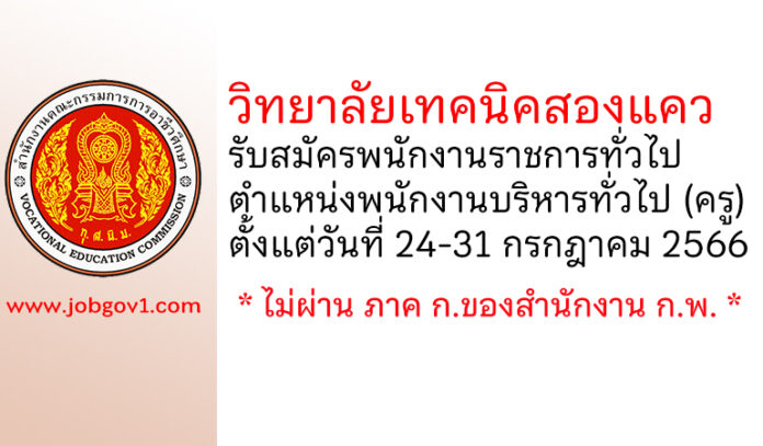 วิทยาลัยเทคนิคสองแคว รับสมัครพนักงานราชการทั่วไป ตำแหน่งพนักงานบริหารทั่วไป (ครู) ตั้งแต่วันที่ 24-31 กรกฎาคม 2566