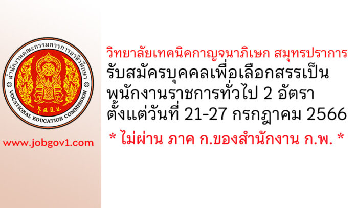 วิทยาลัยเทคนิคกาญจนาภิเษก สมุทรปราการ รับสมัครบุคคลเพื่อเลือกสรรเป็นพนักงานราชการทั่วไป 2 อัตรา ตั้งแต่วันที่ 21-27 กรกฎาคม 2566