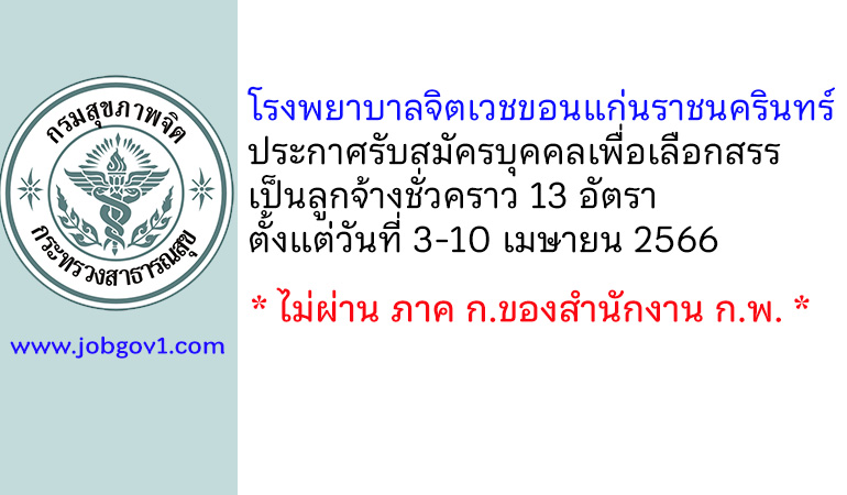 โรงพยาบาลจิตเวชขอนแก่นราชนครินทร์ รับสมัครบุคคลเพื่อเลือกสรรเป็นลูกจ้างชั่วคราว 13 อัตรา ตั้งแต่วันที่ 3-10 เมษายน 2566