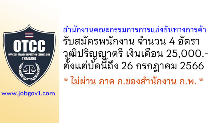 สำนักงานคณะกรรมการการแข่งขันทางการค้า รับสมัครคัดเลือกเพื่อบรรจุและแต่งตั้งเป็นพนักงาน 4 อัตรา ตั้งแต่บัดนี้ถึง 26 กรกฎาคม 2566