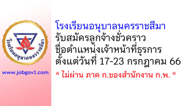 โรงเรียนอนุบาลนครราชสีมา รับสมัครลูกจ้างชั่วคราว ตำแหน่งเจ้าหน้าที่ธุรการ ตั้งแต่วันที่ 17-23 กรกฎาคม 2566