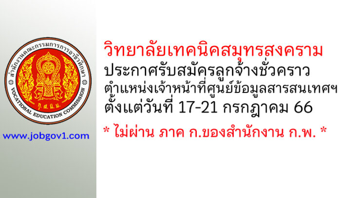 วิทยาลัยเทคนิคสมุทรสงคราม รับสมัครลูกจ้างชั่วคราว ตำแหน่งเจ้าหน้าที่ศูนย์ข้อมูลสารสนเทศฯ ตั้งแต่วันที่ 17-21 กรกฎาคม 2566