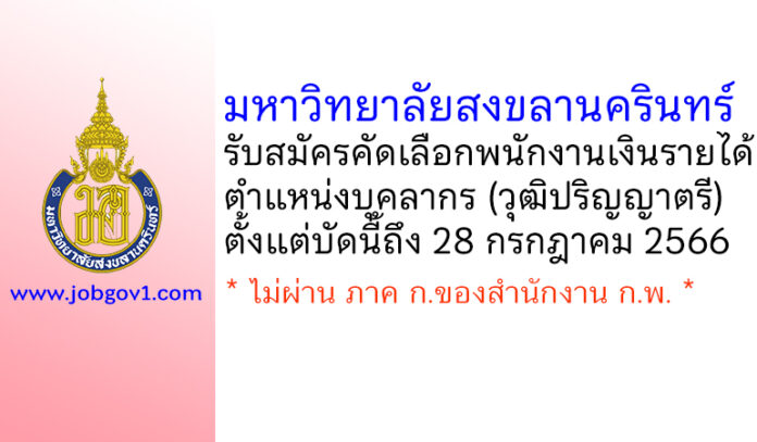 มหาวิทยาลัยสงขลานครินทร์ รับสมัครคัดเลือกพนักงานเงินรายได้ ตำแหน่งบุคลากร ตั้งแต่บัดนี้ถึง 28 กรกฎาคม 2566