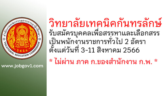 วิทยาลัยเทคนิคกันทรลักษ์ รับสมัครบุคคลเพื่อสรรหาและเลือกสรรเป็นพนักงานราชการทั่วไป 2 อัตรา ตั้งแต่วันที่ 3-11 สิงหาคม 2566