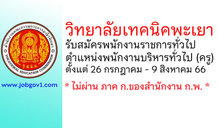 วิทยาลัยเทคนิคพะเยา รับสมัครพนักงานราชการทั่วไป ตำแหน่งพนักงานบริหารทั่วไป (ครู) ตั้งแต่ 26 กรกฎาคม – 9 สิงหาคม 2566