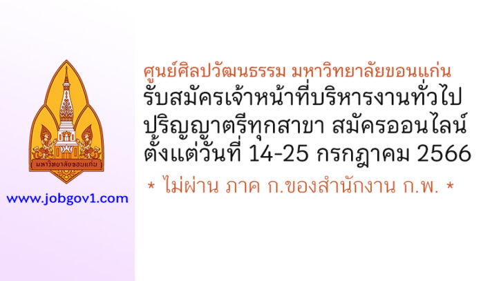 ศูนย์ศิลปวัฒนธรรม มหาวิทยาลัยขอนแก่น รับสมัครเจ้าหน้าที่บริหารงานทั่วไป ตั้งแต่วันที่ 14-25 กรกฎาคม 2566