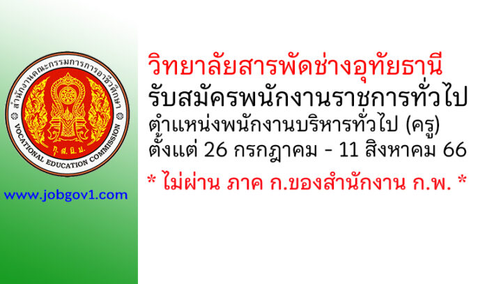 วิทยาลัยสารพัดช่างอุทัยธานี รับสมัครพนักงานราชการทั่วไป ตำแหน่งพนักงานบริหารทั่วไป (ครู) ตั้งแต่ 26 กรกฎาคม – 11 สิงหาคม 2566