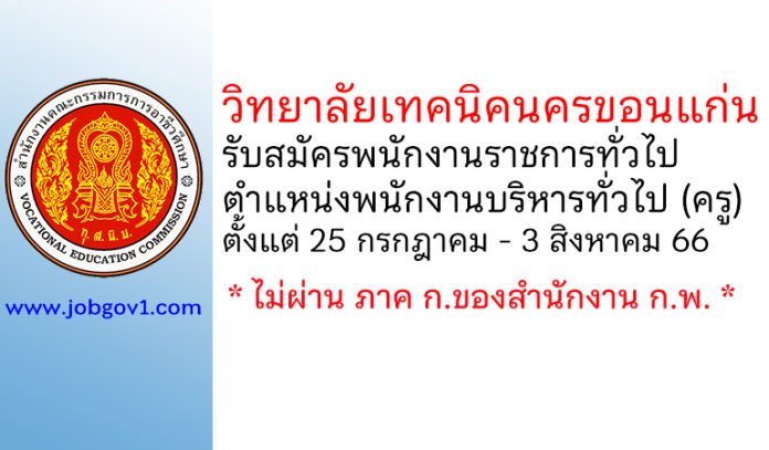 วิทยาลัยเทคนิคนครขอนแก่น รับสมัครพนักงานราชการทั่วไป ตำแหน่งพนักงานบริหารทั่วไป (ครู)