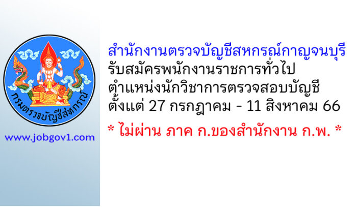 ประกาศสำนักงานตรวจบัญชีสหกรณ์กาญจนบุรี เรื่อง รับสมัครบุคคลเพื่อเลือกสรรเป็นพนักงานราชการทั่วไป ตำแหน่ง นักวิชาการตรวจสอบบัญชี
