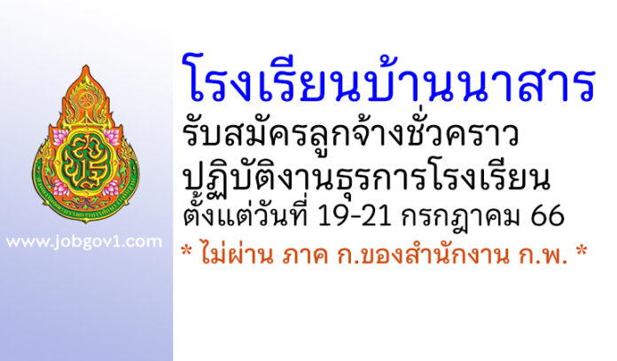 โรงเรียนบ้านนาสาร รับสมัครบุคคลเพื่อจ้างเป็นลูกจ้างชั่วคราวปฏิบัติงานธุรการโรงเรียน ตั้งแต่วันที่ 19-21 กรกฎาคม 2566