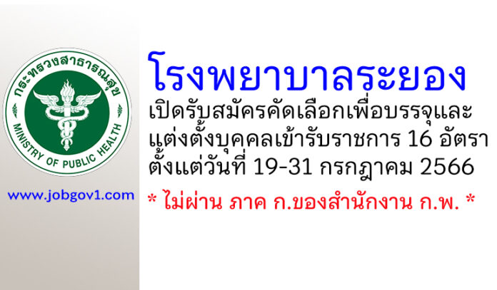 โรงพยาบาลระยอง รับสมัครคัดเลือกเพื่อบรรจุและแต่งตั้งบุคคลเข้ารับราชการ 16 อัตรา ตั้งแต่วันที่ 19-31 กรกฎาคม 2566