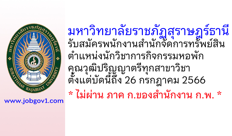 มหาวิทยาลัยราชภัฏสุราษฎร์ธานี รับสมัครพนักงานสำนักจัดการทรัพย์สิน ตำแหน่งนักวิชาการกิจกรรมหอพัก ตั้งแต่บัดนี้ถึง 26 กรกฎาคม 2566
