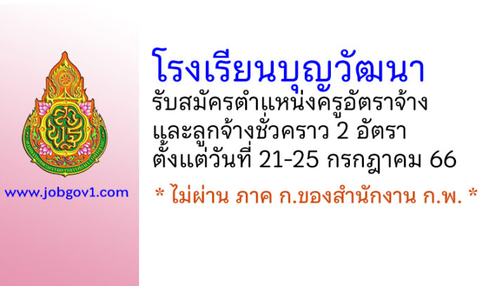 โรงเรียนบุญวัฒนา รับสมัครครูอัตราจ้าง และลูกจ้างชั่วคราว 2 อัตรา ตั้งแต่วันที่ 21-25 กรกฎาคม 2566
