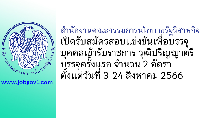 สำนักงานคณะกรรมการนโยบายรัฐวิสาหกิจ รับสมัครสอบแข่งขันเพื่อบรรจุบุคคลเข้ารับราชการ บรรจุครั้งแรก 2 อัตรา ตั้งแต่วันที่ 3-24 สิงหาคม 2566