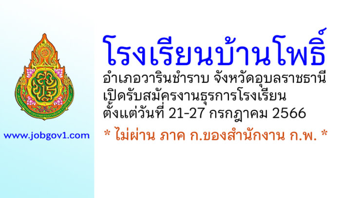ประกาศโรงเรียนบ้านโพธิ์ เรื่อง รับสมัครคัดเลือกบุคคลเพื่อจ้างเป็นลูกจ้างชั่วคราวปฏิบัติงานธุรการโรงเรียน โรงเรียนบ้านโพธิ์ สำนักงานเขตพื้นที่การศึกษาประถมศึกษาอุบลราชธานี เขต 4