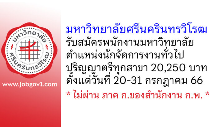 มหาวิทยาลัยศรีนครินทรวิโรฒ รับสมัครพนักงานมหาวิทยาลัย ตำแหน่งนักจัดการงานทั่วไป ตั้งแต่วันที่ 20-31 กรกฎาคม 2566