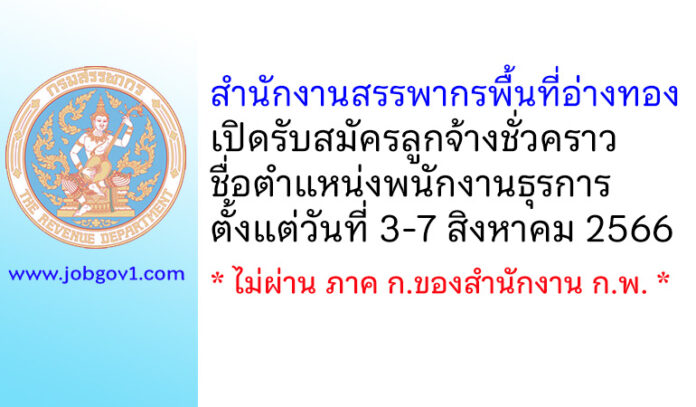สำนักงานสรรพากรพื้นที่อ่างทอง รับสมัครลูกจ้างชั่วคราว ตำแหน่งพนักงานธุรการ ตั้งแต่วันที่ 3-7 สิงหาคม 2566