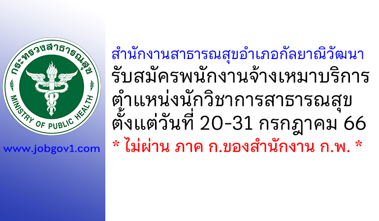 สำนักงานสาธารณสุขอำเภอกัลยาณิวัฒนา รับสมัครพนักงานจ้างเหมาบริการ ตำแหน่งนักวิชาการสาธารณสุข ตั้งแต่วันที่ 20-31 กรกฎาคม 2566