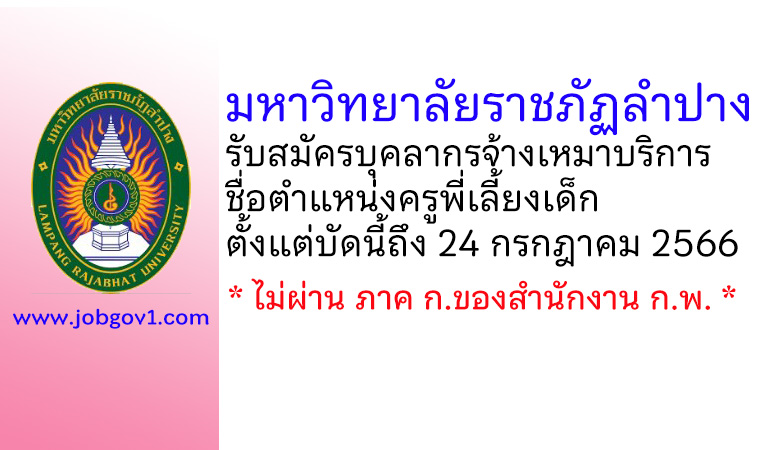 โรงเรียนสาธิตมหาวิทยาลัยราชภัฏลำปาง รับสมัครบุคลากรจ้างเหมาบริการ ตำแหน่งครูพี่เลี้ยงเด็ก ตั้งแต่บัดนี้ถึง 24 กรกฎาคม 2566