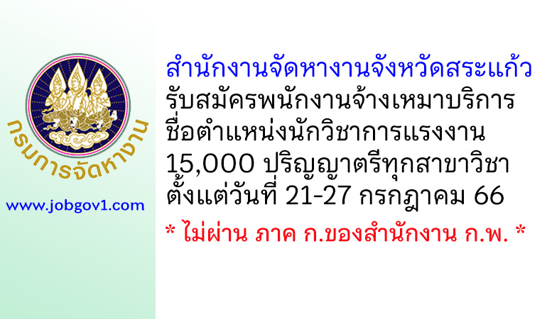 สำนักงานจัดหางานจังหวัดสระแก้ว รับสมัครพนักงานจ้างเหมาบริการ ตำแหน่งนักวิชาการแรงงาน ตั้งแต่วันที่ 21-27 กรกฎาคม 2566