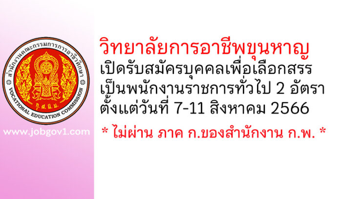 วิทยาลัยการอาชีพขุนหาญ รับสมัครบุคคลเพื่อเลือกสรรเป็นพนักงานราชการทั่วไป 2 อัตรา ตั้งแต่วันที่ 7-11 สิงหาคม 2566