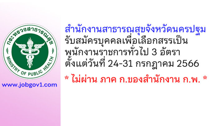 สำนักงานสาธารณสุขจังหวัดนครปฐม รับสมัครบุคคลเพื่อเลือกสรรเป็นพนักงานราชการทั่วไป 3 อัตรา ตั้งแต่วันที่ 24-31 กรกฎาคม 2566