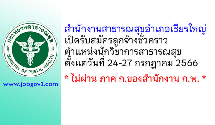 สำนักงานสาธารณสุขอำเภอเชียรใหญ่ รับสมัครลูกจ้างชั่วคราว ตำแหน่งนักวิชาการสาธารณสุข ตั้งแต่วันที่ 24-27 กรกฎาคม 2566