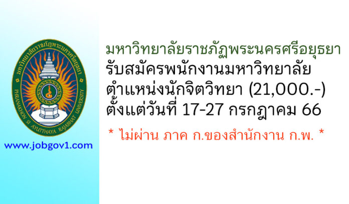 มหาวิทยาลัยราชภัฏพระนครศรีอยุธยา รับสมัครสอบแข่งขันเป็นพนักงานมหาวิทยาลัย ตำแหน่งนักจิตวิทยา ตั้งแต่วันที่ 17-27 กรกฎาคม 2566