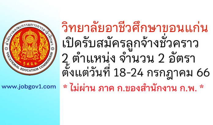 วิทยาลัยอาชีวศึกษาขอนแก่น รับสมัครลูกจ้างชั่วคราว 2 อัตรา ตั้งแต่วันที่ 18-24 กรกฎาคม 2566