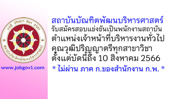 สถาบันบัณฑิตพัฒนบริหารศาสตร์ รับสมัครสอบแข่งขันเป็นพนักงานสถาบัน ตำแหน่งเจ้าหน้าที่บริหารงานทั่วไป ตั้งแต่บัดนี้ถึง 10 สิงหาคม 2566