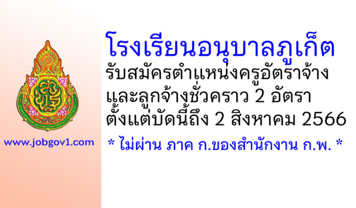 โรงเรียนอนุบาลภูเก็ต รับสมัครครูอัตราจ้าง และลูกจ้างชั่วคราว 2 อัตรา ตั้งแต่บัดนี้ถึง 2 สิงหาคม 2566