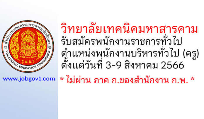 วิทยาลัยเทคนิคมหาสารคาม รับสมัครพนักงานราชการทั่วไป ตำแหน่งพนักงานบริหารทั่วไป (ครู) ตั้งแต่วันที่ 3-9 สิงหาคม 2566