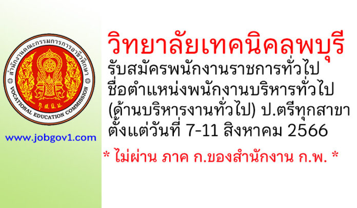 วิทยาลัยเทคนิคลพบุรี รับสมัครพนักงานราชการทั่วไป ตำแหน่งพนักงานบริหารทั่วไป (ด้านบริหารงานทั่วไป) ตั้งแต่วันที่ 7-11 สิงหาคม 2566