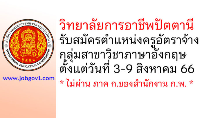 วิทยาลัยการอาชีพปัตตานี รับสมัครครูอัตราจ้าง สาขาวิชาภาษาอังกฤษ ตั้งแต่วันที่ 3-9 สิงหาคม 2566