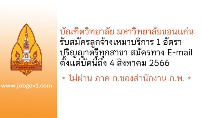 บัณฑิตวิทยาลัย มหาวิทยาลัยขอนแก่น รับสมัครลูกจ้างเหมาบริการ จำนวน 1 อัตรา ตั้งแต่บัดนี้ถึง 4 สิงหาคม 2566
