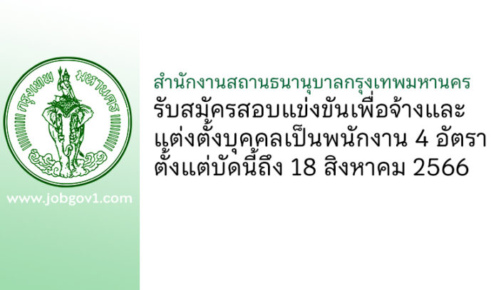 สำนักงานสถานธนานุบาลกรุงเทพมหานคร รับสมัครสอบแข่งขันเป็นพนักงาน 4 อัตรา ตั้งแต่บัดนี้ถึง 18 สิงหาคม 2566
