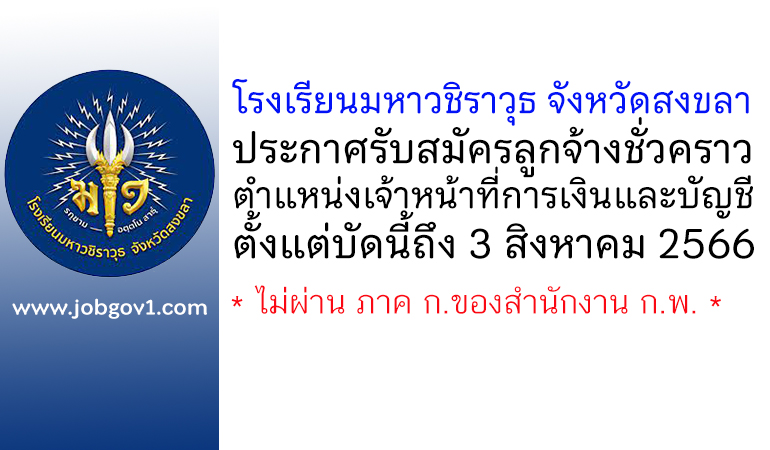 โรงเรียนมหาวชิราวุธ จังหวัดสงขลา รับสมัครลูกจ้างชั่วคราว ตำแหน่งเจ้าหน้าที่การเงินและบัญชี ตั้งแต่บัดนี้ถึง 3 สิงหาคม 2566
