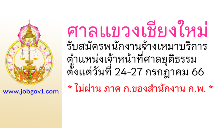 ศาลแขวงเชียงใหม่ รับสมัครพนักงานจ้างเหมาบริการ ตำแหน่งเจ้าหน้าที่ศาลยุติธรรม ตั้งแต่วันที่ 24-27 กรกฎาคม 2566
