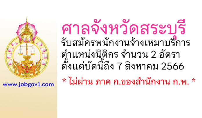 ศาลจังหวัดสระบุรี รับสมัครพนักงานจ้างเหมาบริการ ตำแหน่งนิติกร จำนวน 2 อัตรา ตั้งแต่บัดนี้ถึง 7 สิงหาคม 2566