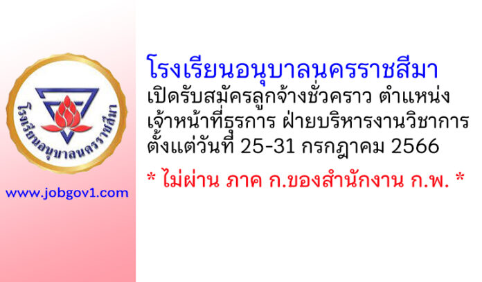 โรงเรียนอนุบาลนครราชสีมา รับสมัครลูกจ้างชั่วคราว ตำแหน่งเจ้าหน้าที่ธุรการ ฝ่ายบริหารงานวิชาการ ตั้งแต่วันที่ 25-31 กรกฎาคม 2566